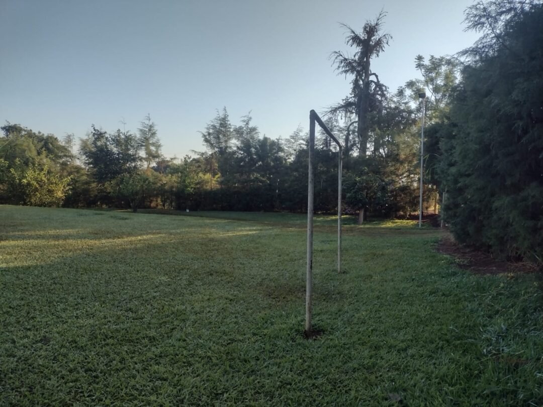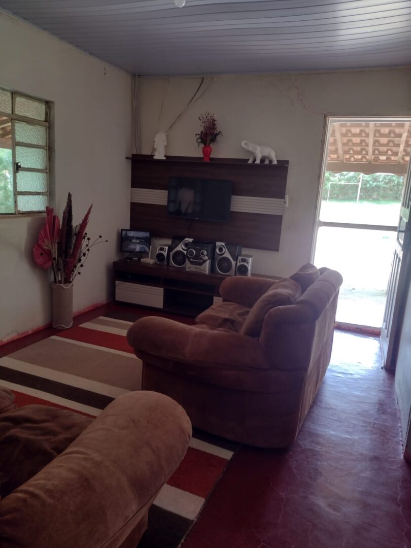 Descrição: dois quartos, sala, dois banheiros, varanda, churrasqueira, piscina e campo de futebol.